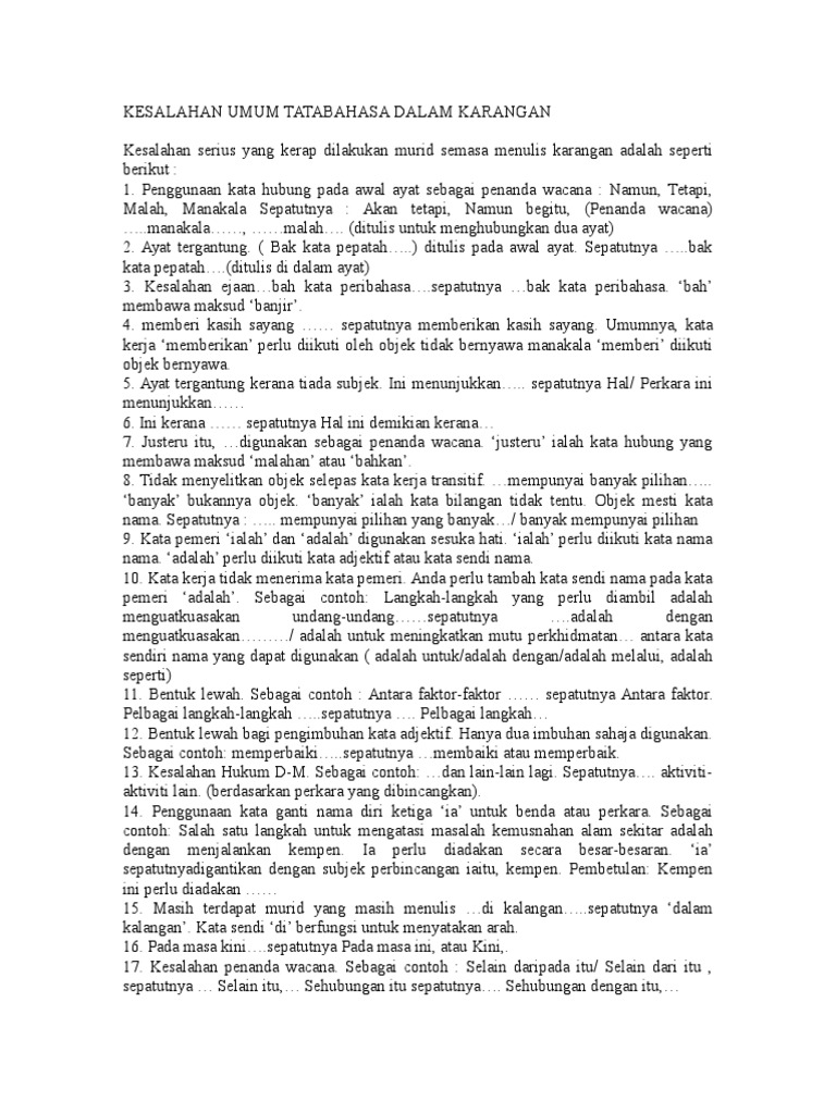 Kesalahan Umum Tatabahasa Dalam Karangan Pdf